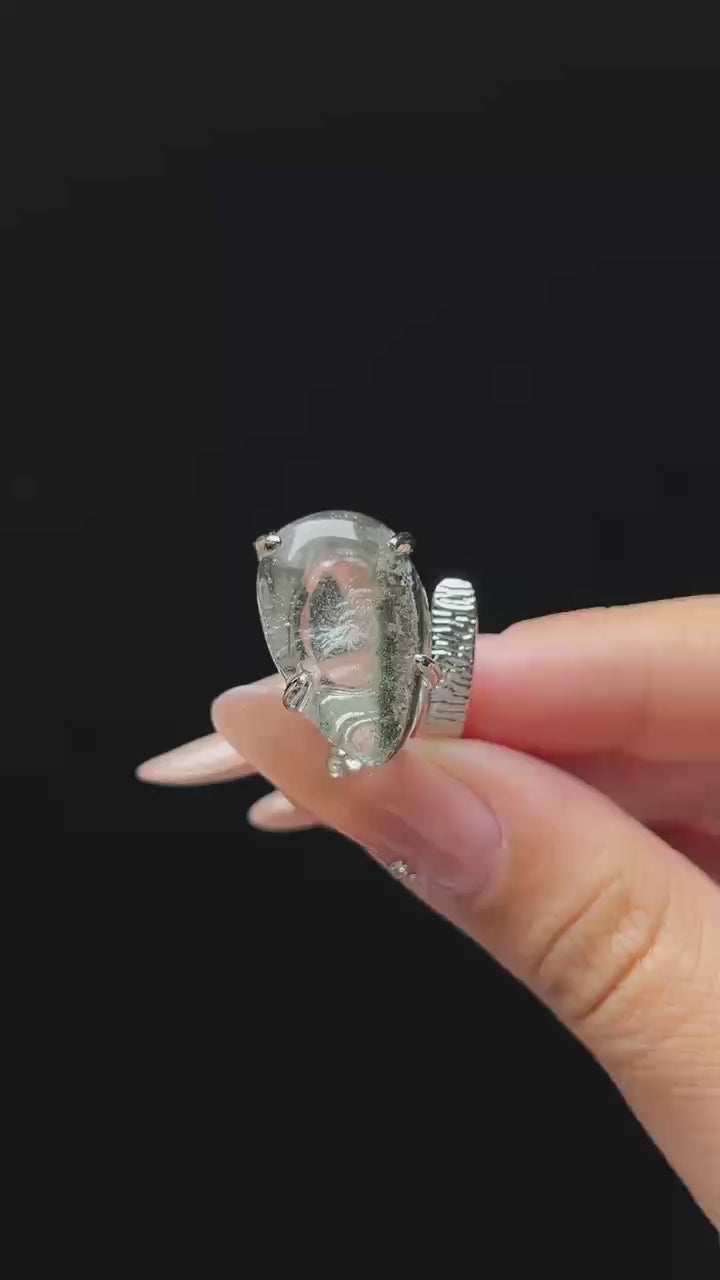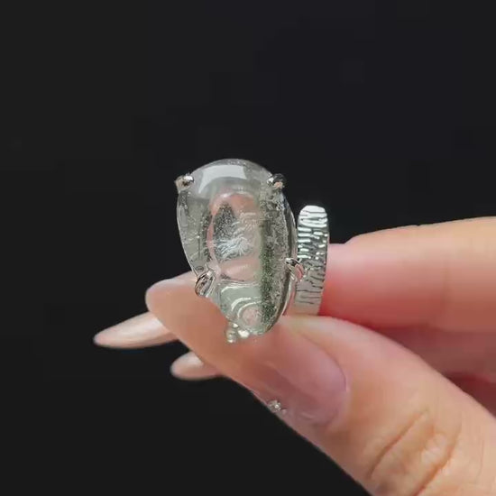 This raw Green Phantom Quartz ring reveals the layers of your evolution — a visual metaphor for your unfolding.