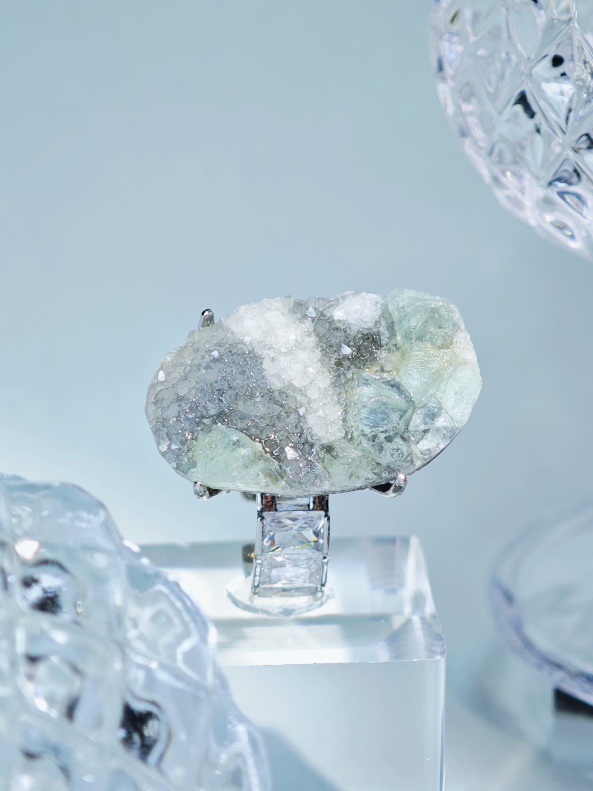 ✦ Crystal Origins : Druzy Quartz (Brazil), Aquamarine (Brazil)