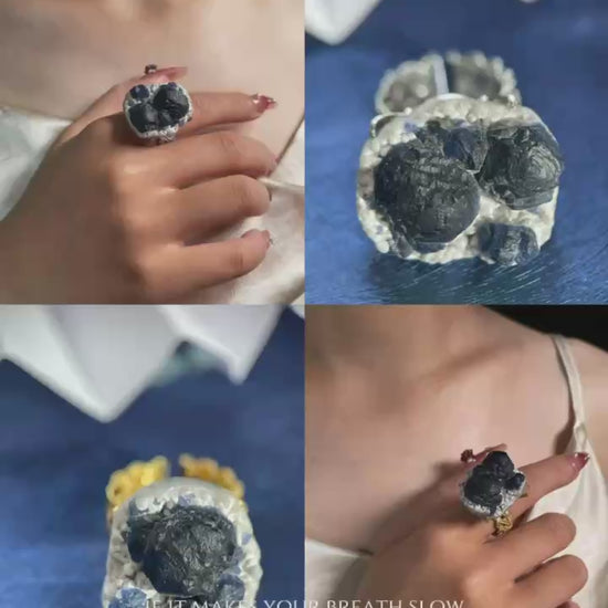 ✦ Keywords: raw fluorite ring, crystal ring for focus, healing crystal jewelry, oryssia gemstone ring, blueberry fluorite jewelry