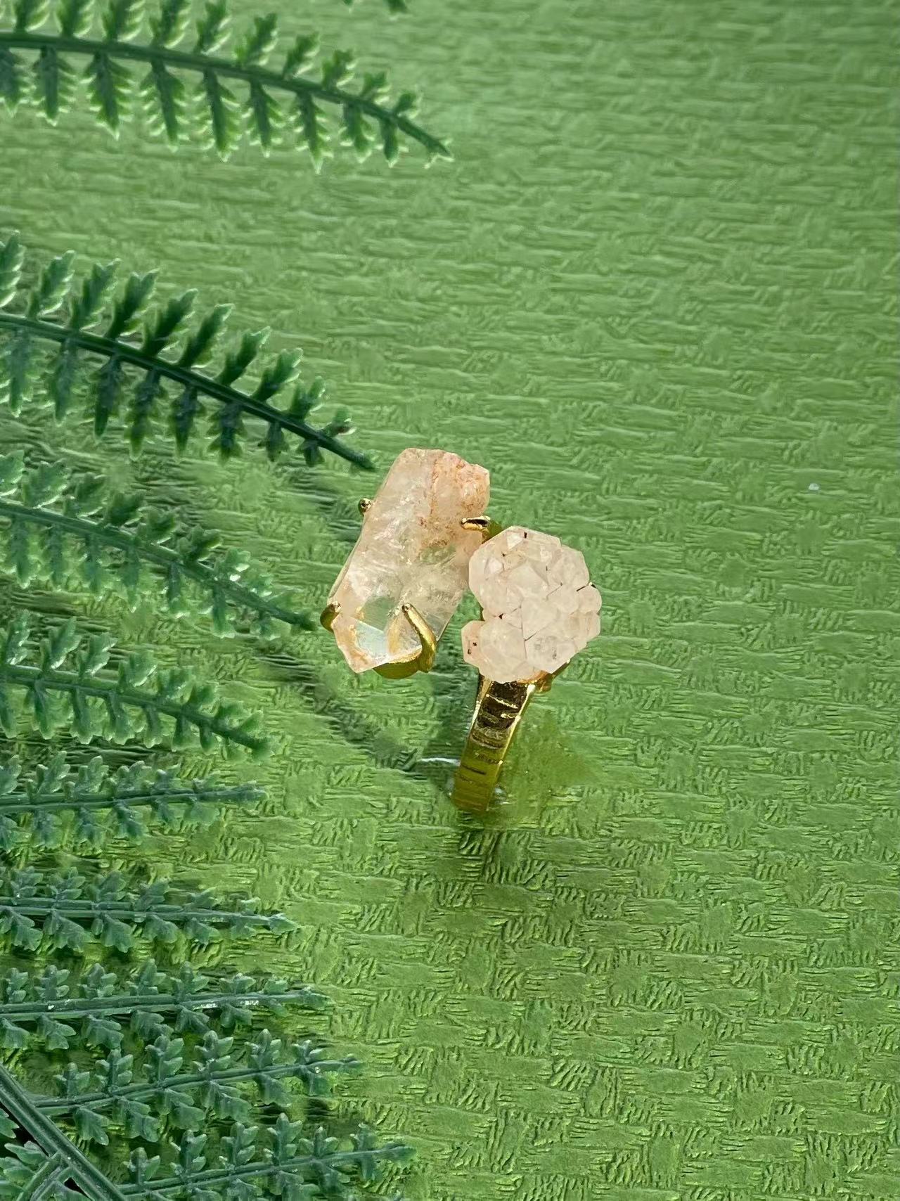 This dual-stone ring merges twin flames of ancient Earth energy — powerful quartz formed with petroleum inclusions and warm red clay.