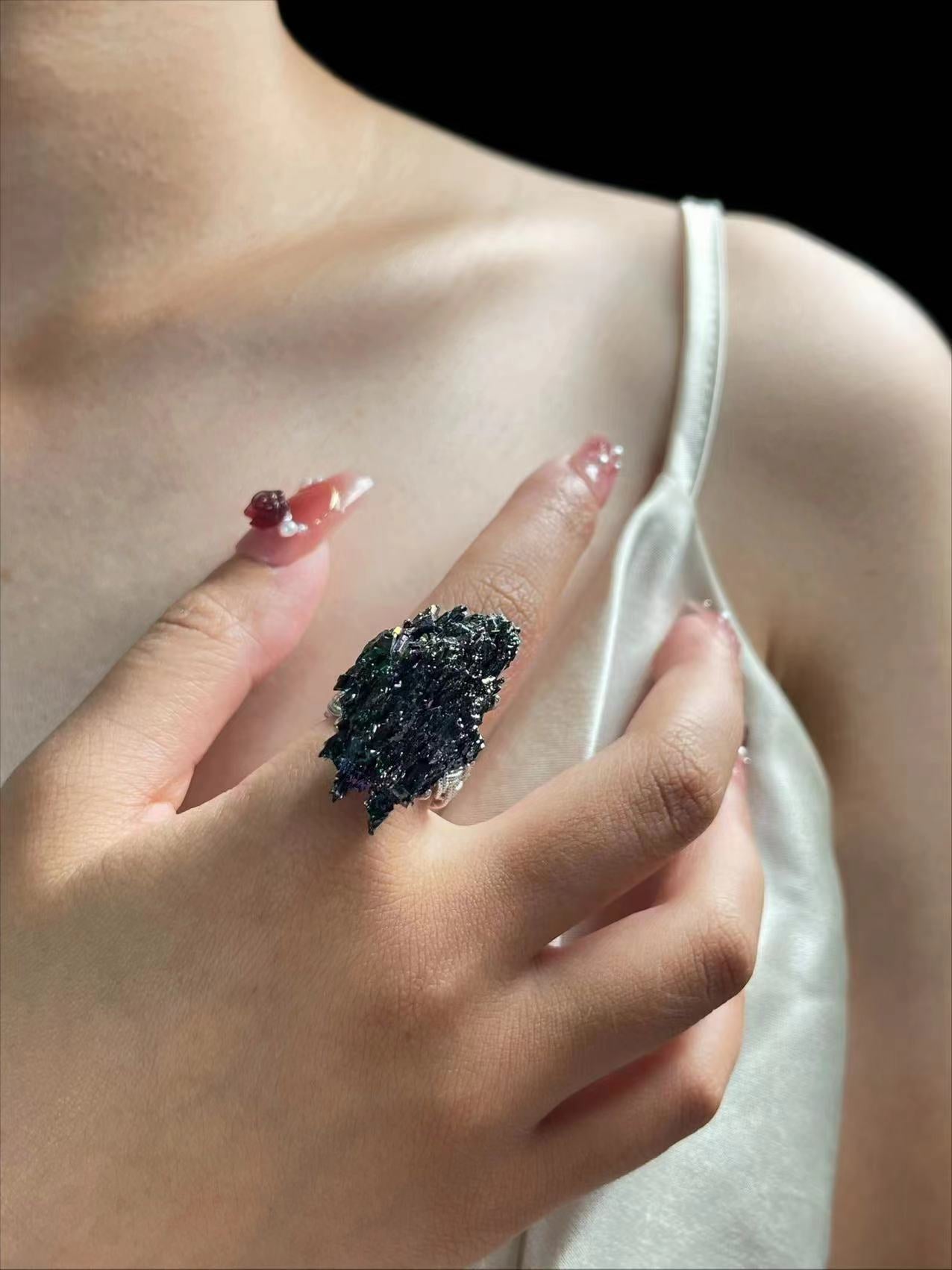 ✦ Keywords: rainbow hematite ring, healing crystal jewelry, energy protection stone, raw crystal ring, spiritual ring