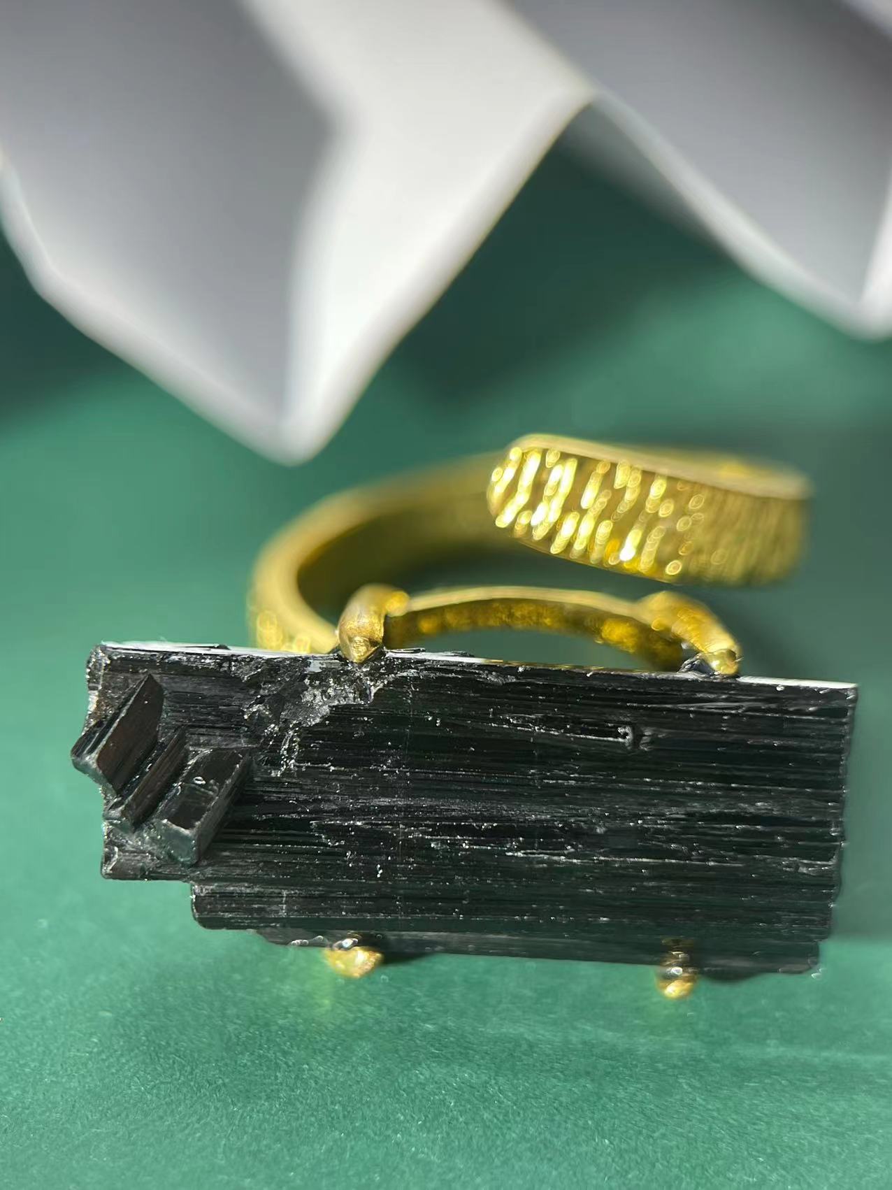 Crafted from the Earth’s fiercest protector, this raw Black Tourmaline ring grounds your energy with quiet strength. A sacred ally for shielding, balancing, and centering.