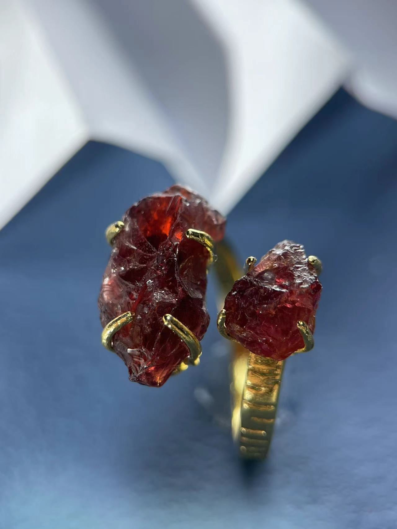 This twin Garnet cluster ring is a pulse of primal energy — grounding, vital, and fully alive. It sparks manifestation through action and confidence.
